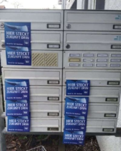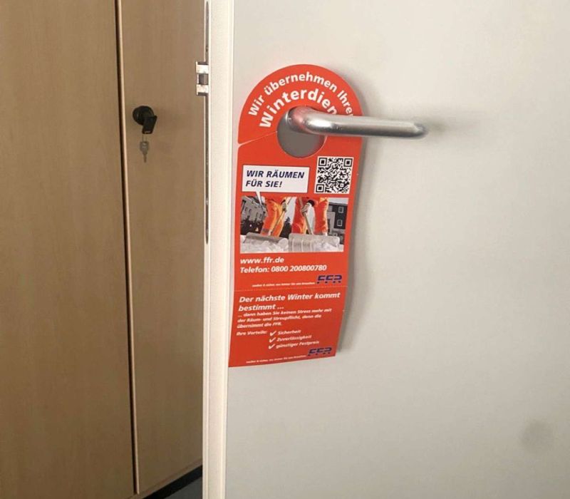 Haushaltwerbung, die nicht klassisch in den Briefkasten eingeworfen wird, sondern andersartig angebracht wird – direkt an der Tür des Empfängers.