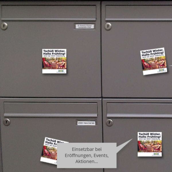 Zur Eröffnung eines OBI-Baumarkts veranstaltete der Hagebaumarkt am selben Tag eine Rabattaktion – gezielt kommuniziert über Briefkastenaufkleber im Zielgebiet.