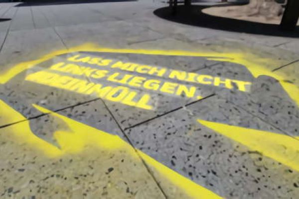 Auffällige Bodenmarkierungen im öffentlichen Raum – kurzlebig, aber einprägsam.